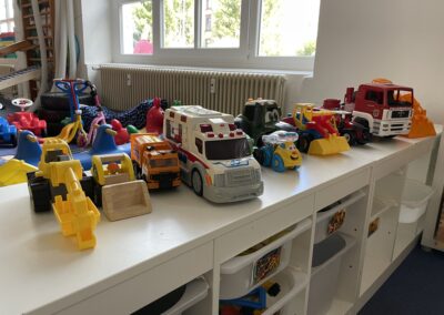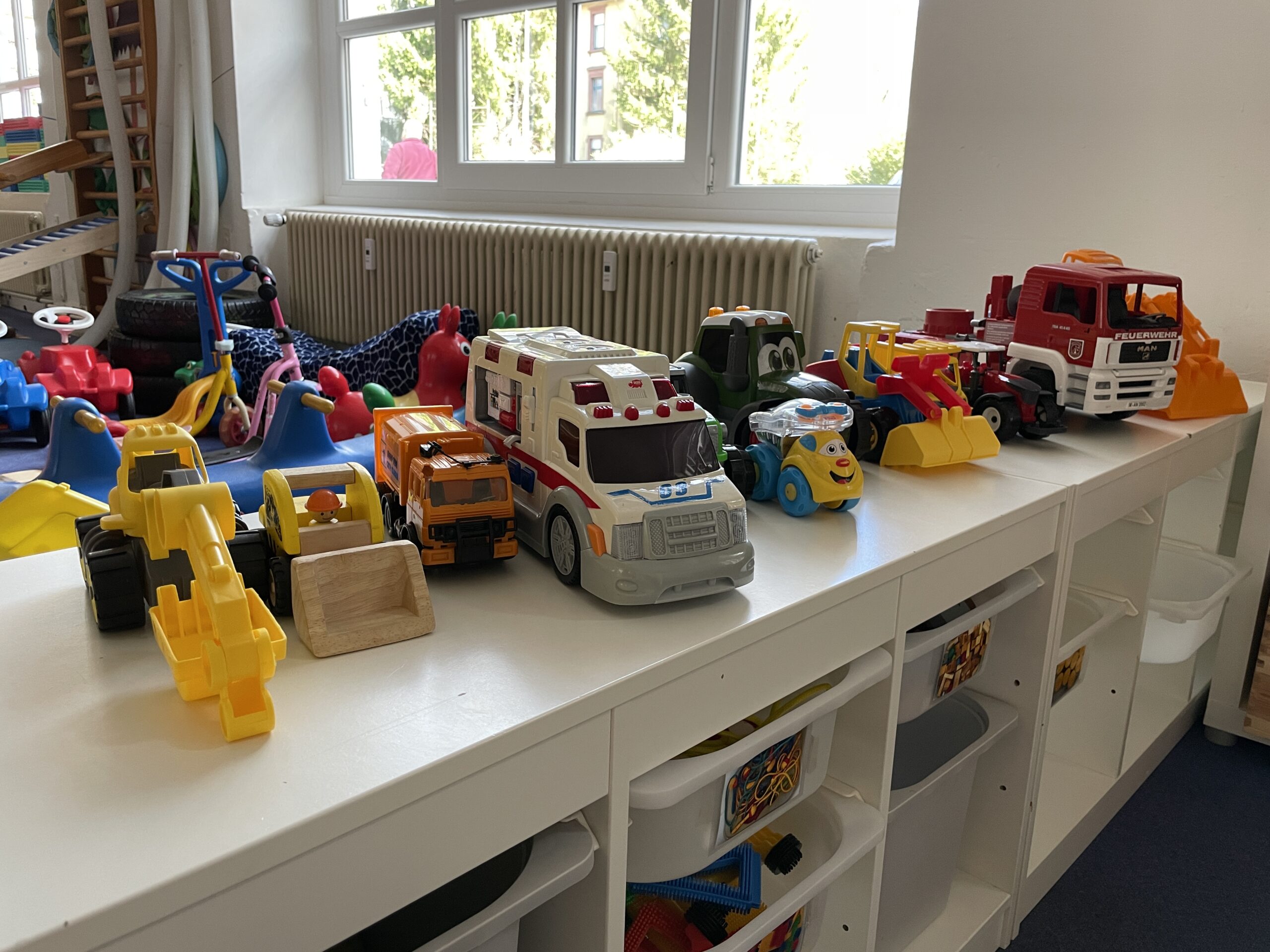 - Mehrere Bobbycars, Roller und Rollbretter zum Durchsausen des Raumes